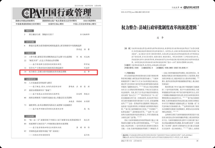 凌争副教授荣获优秀学术论文奖。获奖作品系《中国行政管理》2022 年第 5 期发表的凌争副教授独作论文“权力整合:县域行政审批制度改革的演进逻辑”。