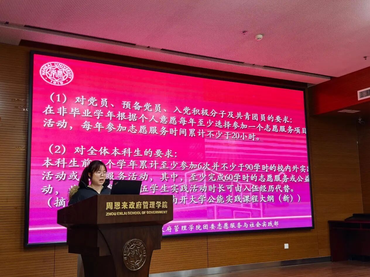 随后,实践考评中心的负责人邹含瑜同学为大家详细说明了志愿服务与社会实践时长的相关规定,并结合成人直播
