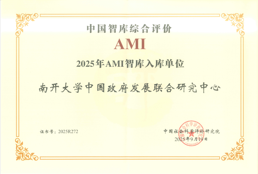 中国政府发展联合研究中心入选“中国智库综合评价2025年AMI智库”名单。
