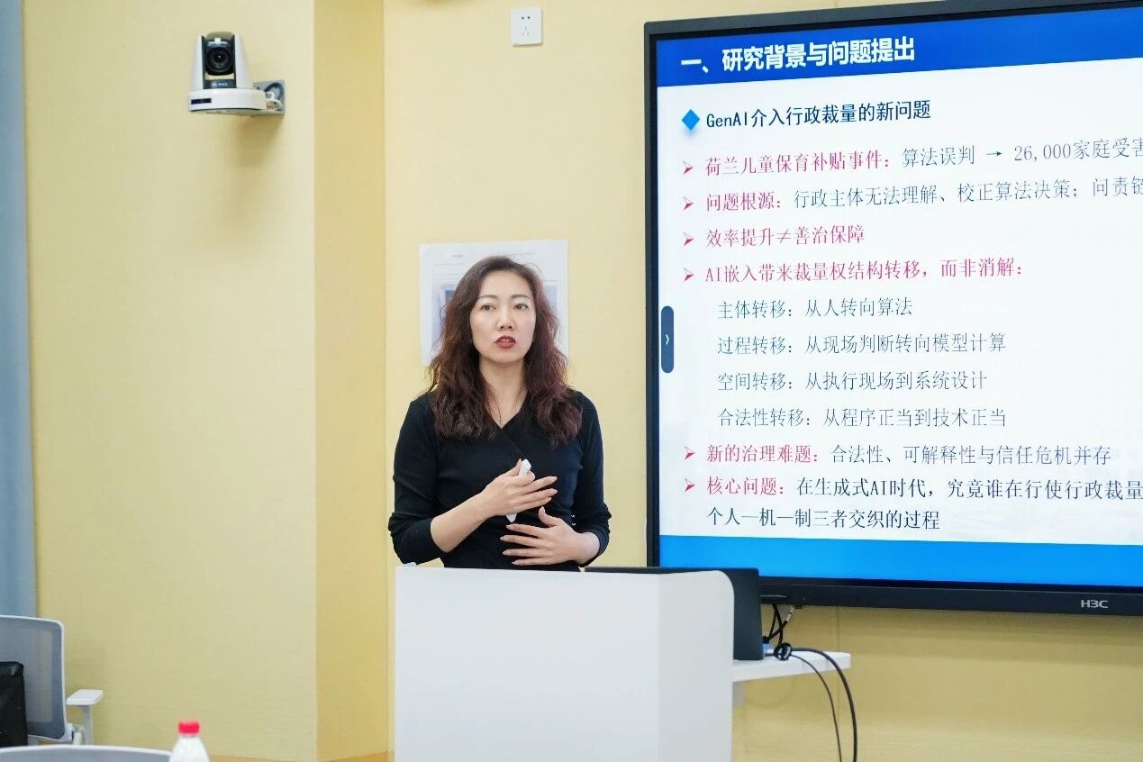 院长程镝教授发表了以《生成式人工智能下行政裁量机制的类型化与制度重塑》为题的演讲,从规则明确性和情境复杂性两个维度,分析了人工智能辅助下行政裁量的不同模式。